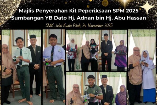Majlis Solat Sunat Taubat, Solat Sunat Hajat dan bacaan Surah Yasin calon SPM SMKJKP 2025 bersama Pihak Pengurusan SMKJKP. Amanat Tuan Pengetua, Pn Norhidah bt Mat Nor dan penyerahan Exam Kit sumbanagan Ahli Parlimen Kuala Pilah, Datok Hj Adnan bin Hj Abu Hassan serta cenderahati daripada Unit Bimbingan dan Kaunseling.
