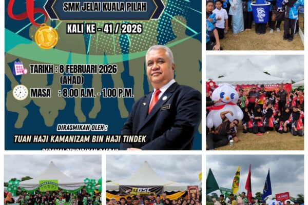 Kejohanan Balapan dan Padang SMK Jelai Kuala Pilah telah berlangsung dengan meriah dan jayanya pada 08 Februari 2026 (Ahad) yang lepas. Tahniah diucapkan kepada semua pemenang. Justeru, pihak sekolah sebagai Jawatankuasa Pengelola Kejohanan Balapan dan Padang SMK Jelai Kuala Pilah Kali Ke-41 Tahun 2026 dengan penuh takzim dan tulus ikhlas merakamkan setinggi-tinggi penghargaan serta ucapan…